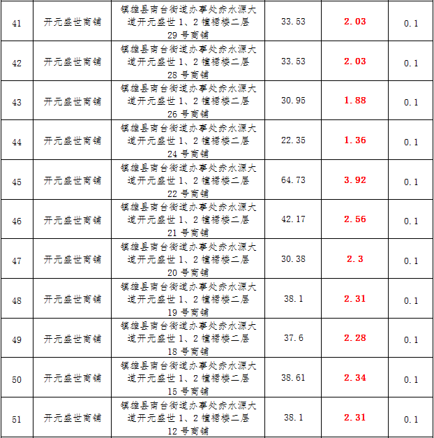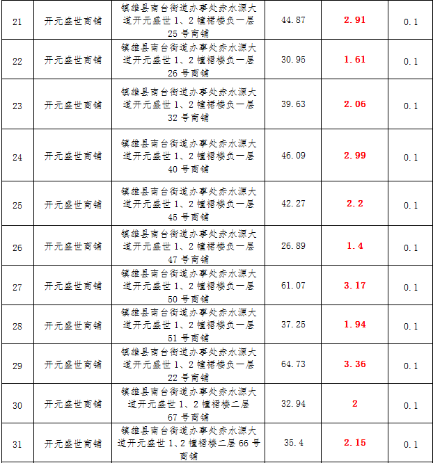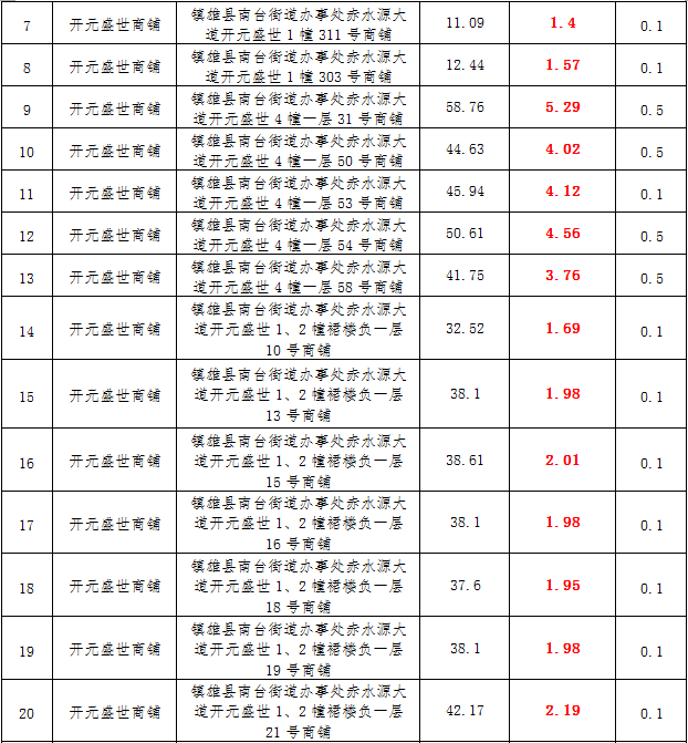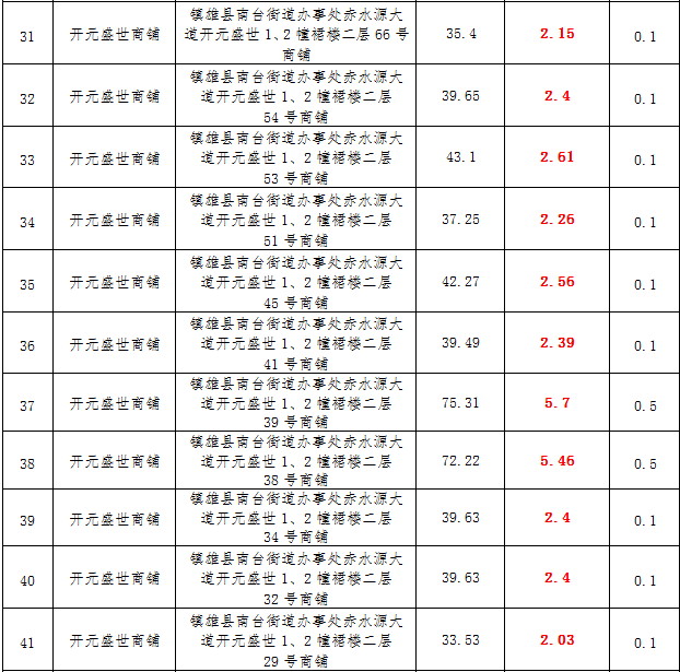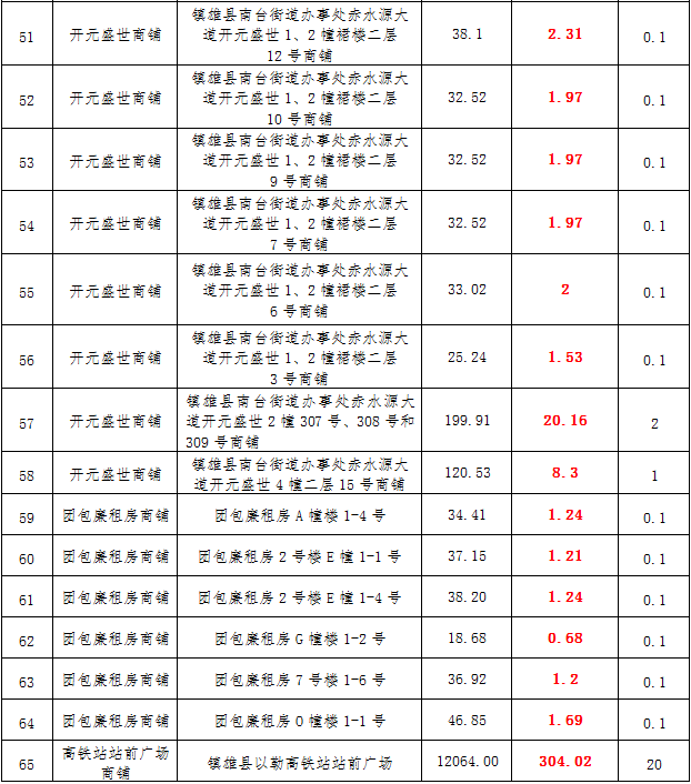 (一)拍租镇雄发展集团有限公司国有门面3年期使用权,详见下表: